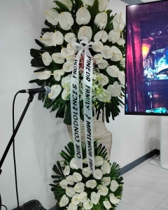 White Anthuriums, lilies & orchids Arrangement