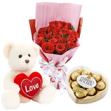 1 Dozen + Ferrero Heart + 2ft teddy +pillowNo Product Detail Available